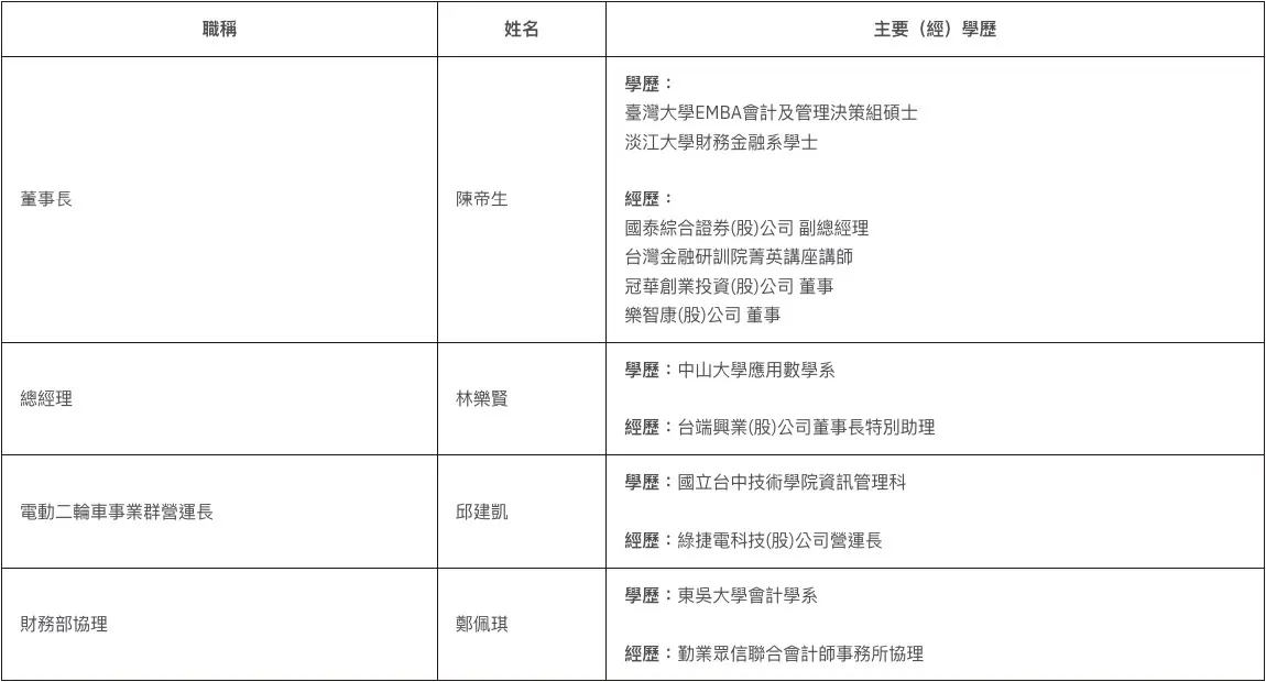 董事長 | 陳帝生 | 總經理 | 林樂賢 | ||